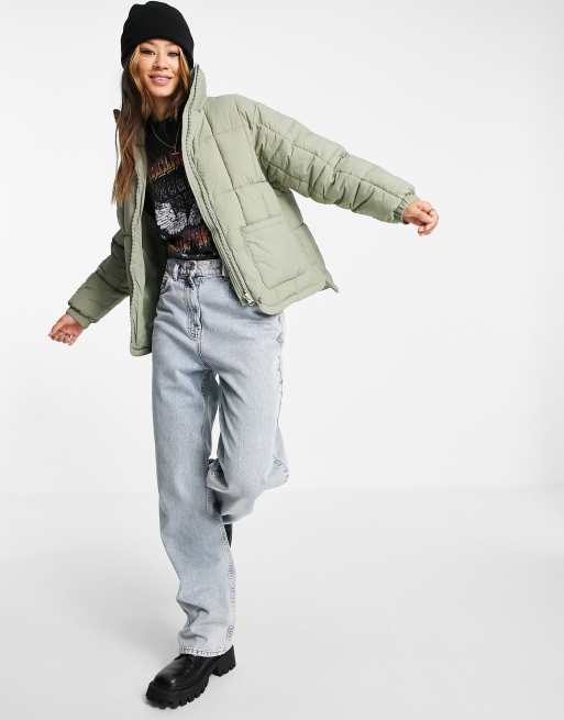Meghan puffer jacket topshop clearance, Topshop quilted mid length puffer jacket in sage clearance