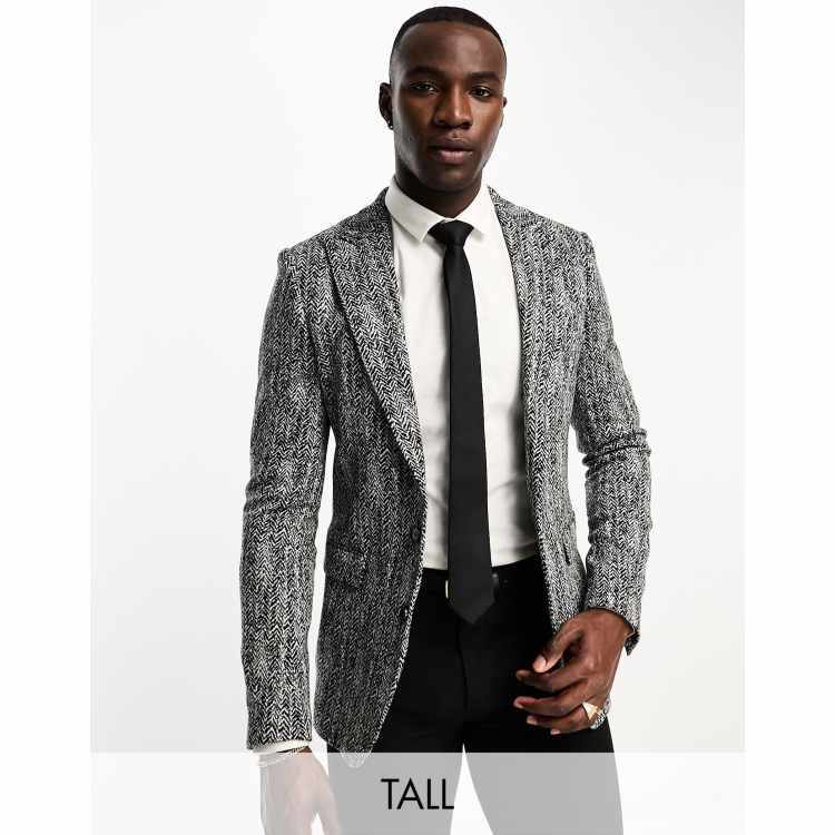 Devils Advocate Tall skinny fit suit jacket in black herringbone