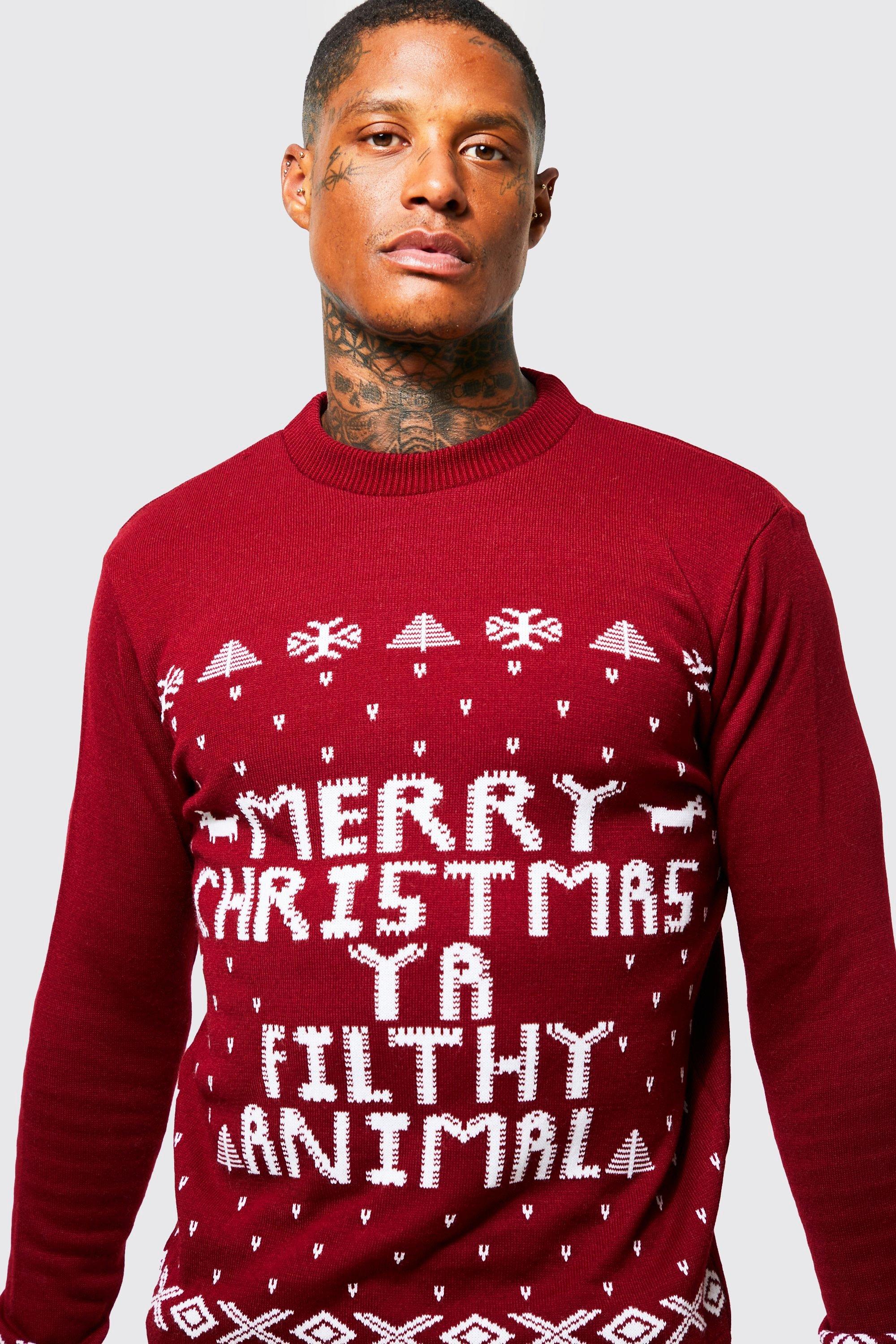 Merry christmas ya filthy animal christmas sweater clearance, A Holiday Sweater That Reads Merry Christmas Ya Filthy Animal clearance