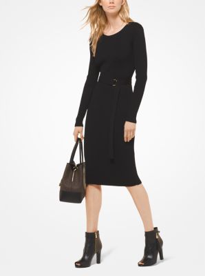 - michael kors belted ribbed knit dress