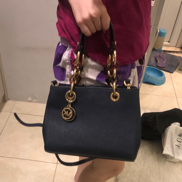 michael kors bag cynthia small in navy 100 authentic real pict