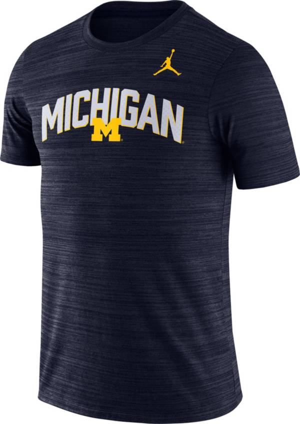 Jordan Men s Michigan Wolverines Blue Dri FIT Velocity Football T Shirt