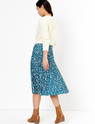 Jersey Floral Circle Pleated Midi Skirt M S Collection M S