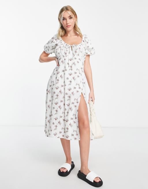 Wednesday s Girl midi milkmaid tea dress in white floral