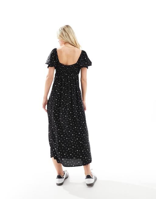 Miss Selfridge Petite tie front midi tea dress in black polka dot