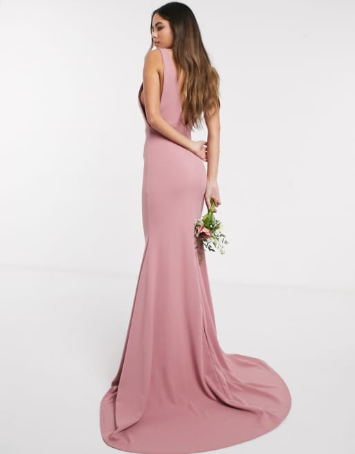 Missguided Bridesmaid low back dress in blush