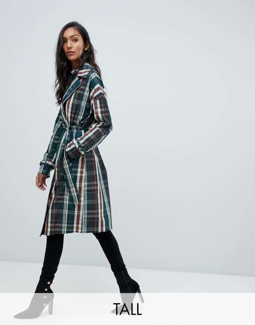 Missguided classic trench coat clearance, Missguided Tall check classic trench in multi clearance