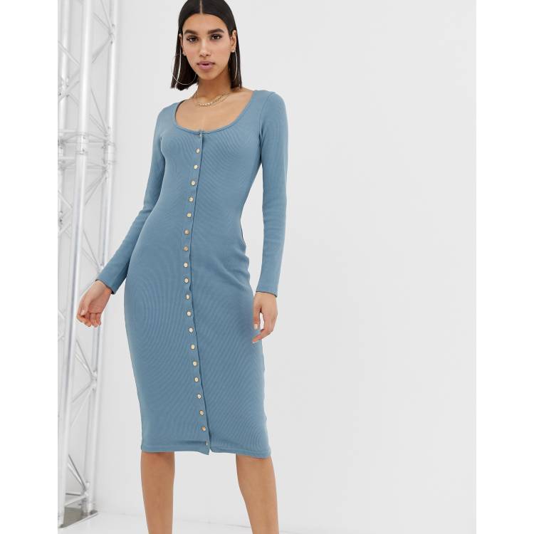 Missguided popper dress clearance, Black Brushed Rib Popper Front Midi Dress PrettyLittleThing clearance