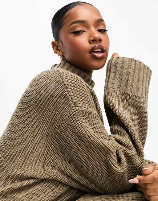 Monki jumper dress clearance, Monki oversized midi jumper dress with side splits in dark beige clearance
