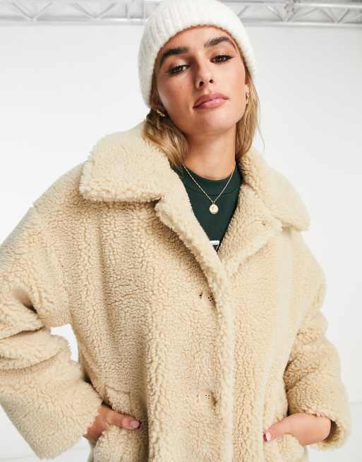 Monki teddy coat in beige