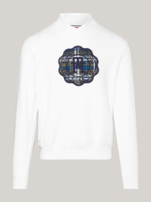 Monogram logo sweatshirt clearance, Logo Stamp Appliqu Baseball Collar Sweatshirt White Tommy clearance