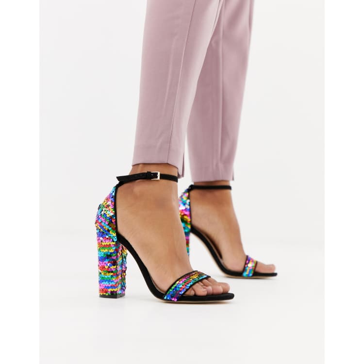 Multicolor sequin ankle strap chunky heeled sandals clearance