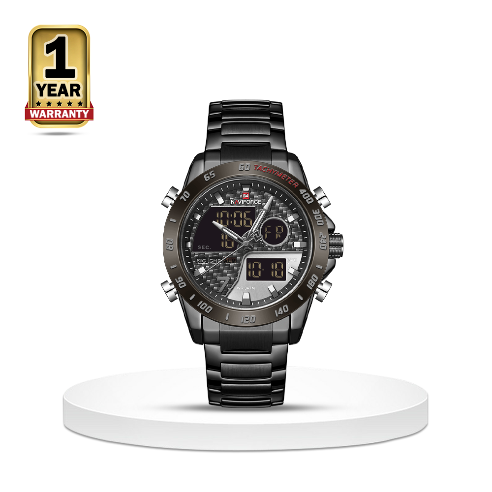 Naviforce all models clearance, Naviforce NF9171 Stainless Steel Dual Time Wrist Watch For Men Black clearance