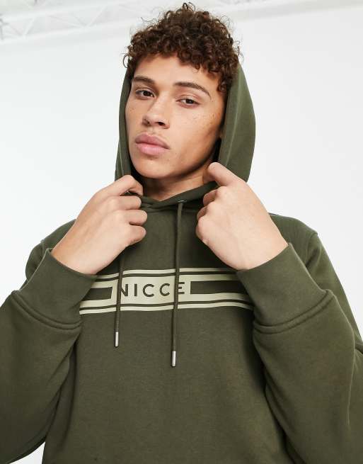 Nicce London Hoodie In Green With Large Logo Khaki by Nicce