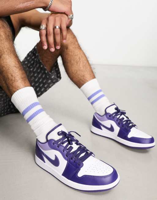 Nike air jordan 1 low trainer in white and purple clearance