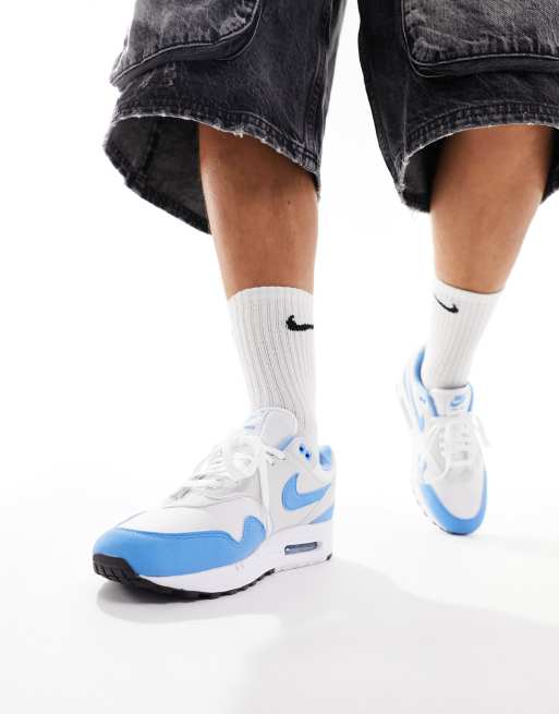 Nike Air Max 1 Sneakers in wit en blauw ASOS
