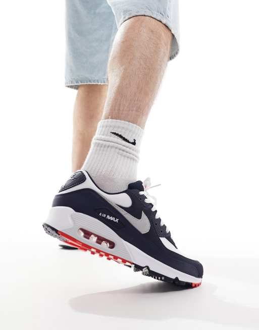 Nike Air Max 90 Sneakers in wit marineblauw en rood ASOS