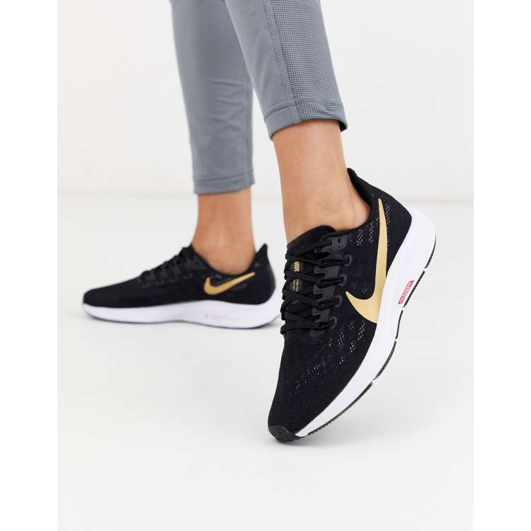 Nike Running Pegasus 36 trainers in black with gold swoosh