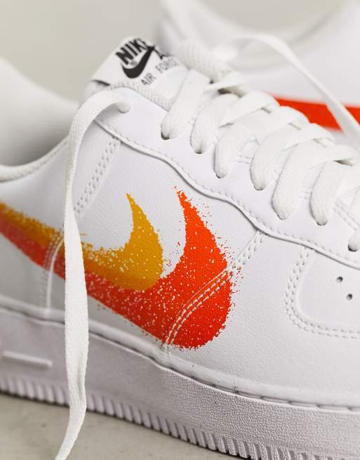 Zapatillas de deporte blancas y naranjas con logo doble efecto espray Air Force 1 07 de Nike