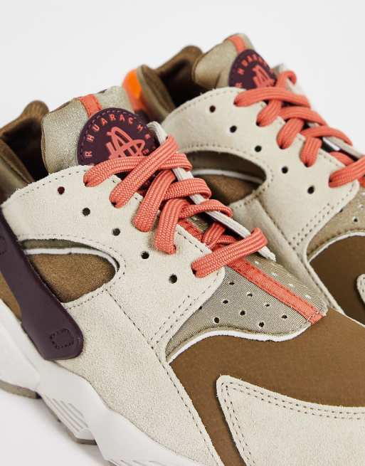 Nike Air Huarache trainers in khaki and burgundy mix ASOS