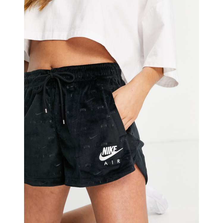 Nike Air velour shorts in black with all over swoosh ASOS