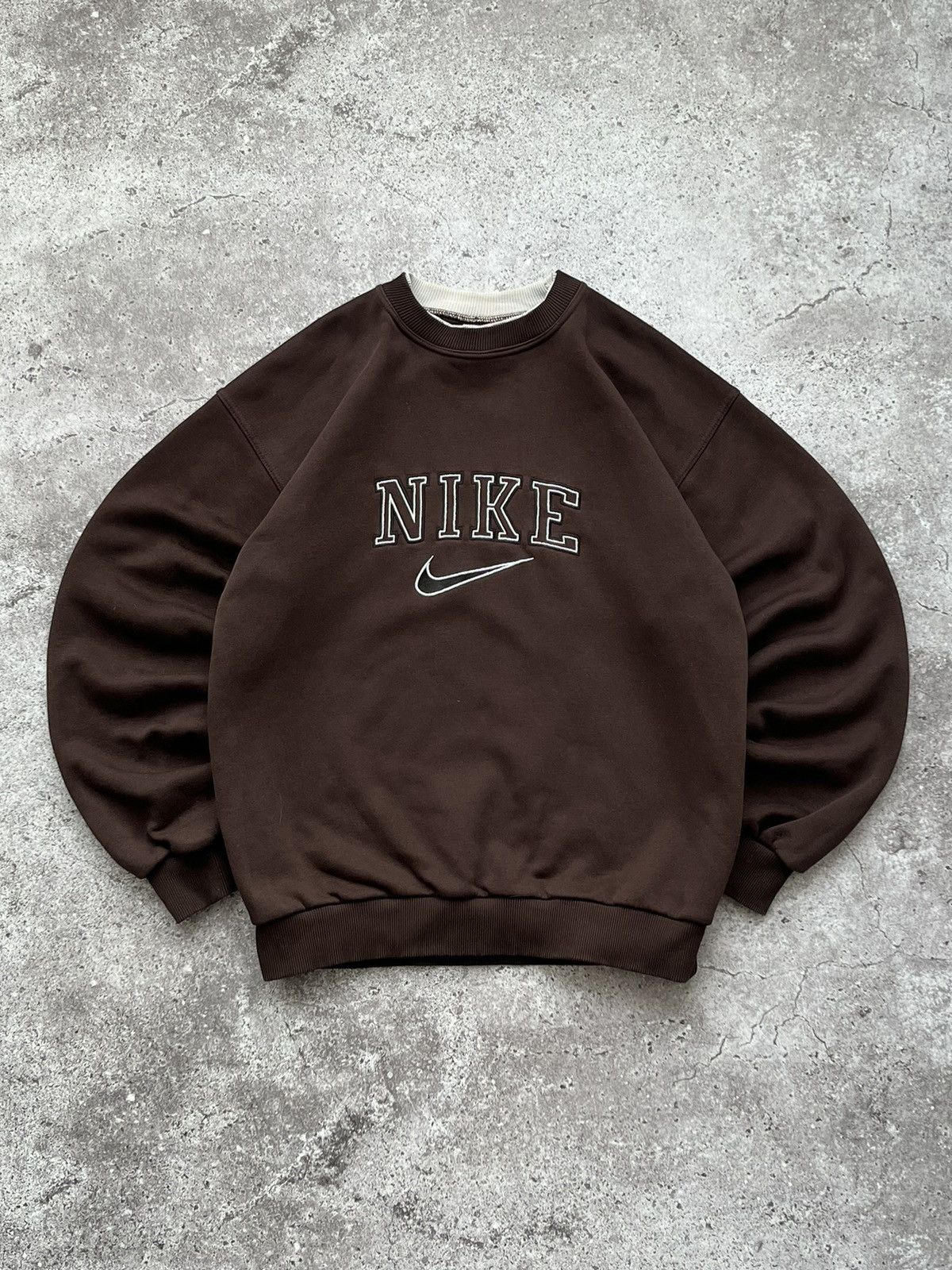 Vintage Style 90s Nike Spellout Sweatshirt Brown TodaysUniform