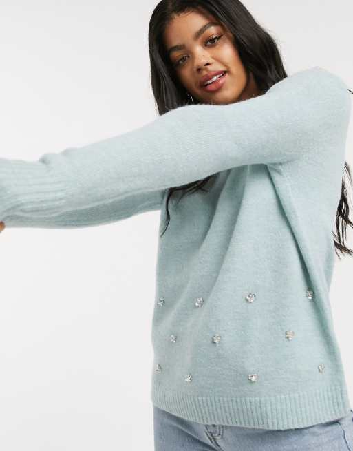 Oasis womens jumpers clearance, Oasis fluffy embellished jumper in mint ASOS clearance