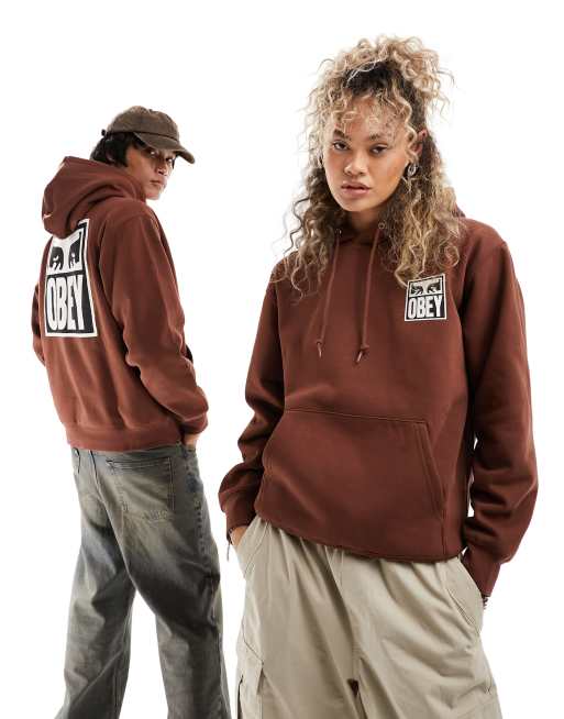 Obey international hoodie clearance, Obey icon eyes 2 unisex hoodie in brown ASOS clearance