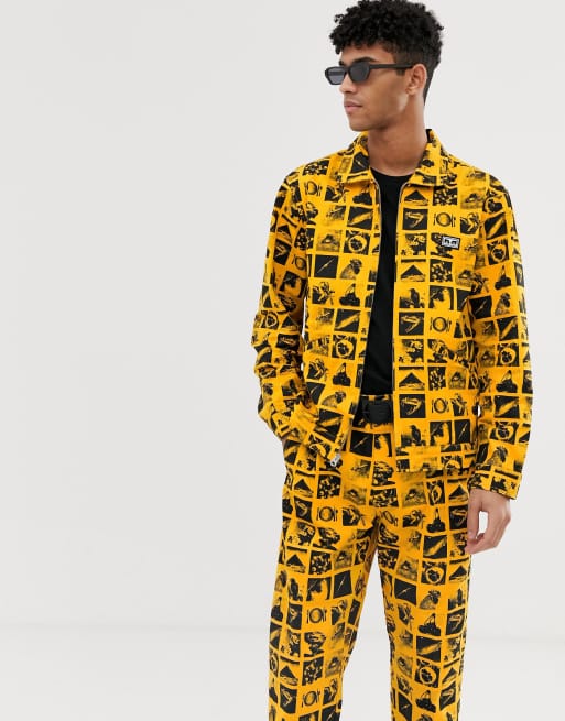 Obey Chaos trucker jacket with all over print in yellow ASOS