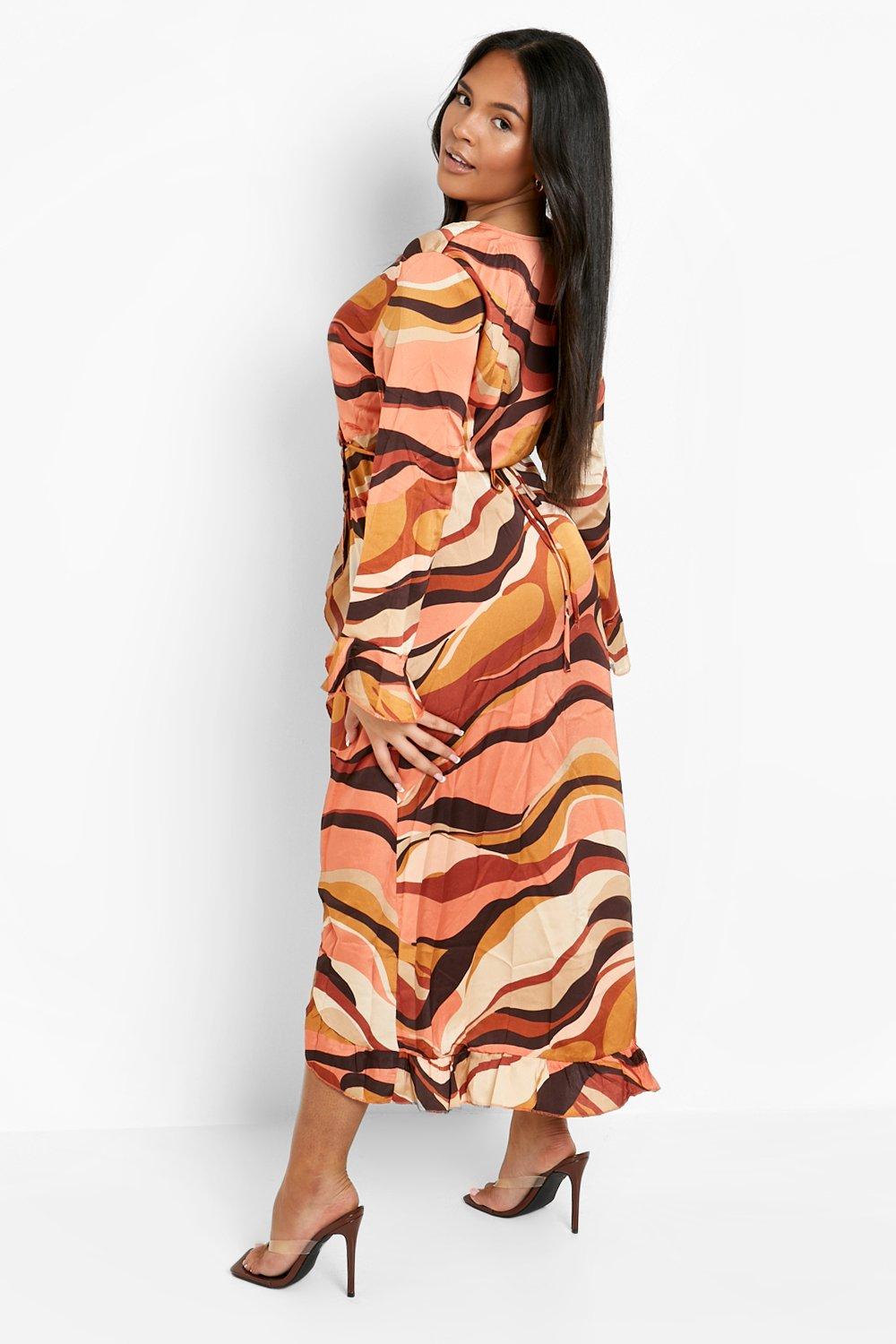 Plus 70 s Marble Satin Wrap Dress boohoo