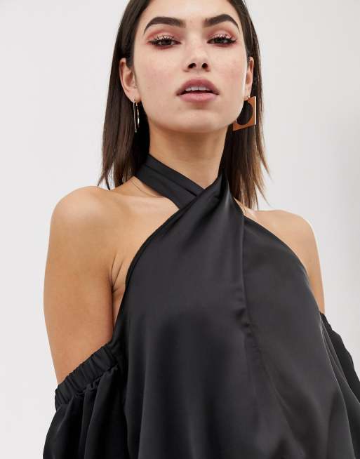 ASOS DESIGN off shoulder halter neck top in black ASOS
