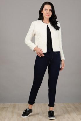 Off white short jacket clearance, Buy STOP Off White Solid Regular Neck Fur Womens Winter Wear clearance