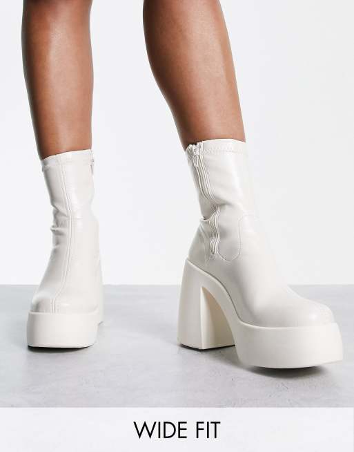 ASOS DESIGN Wide Fit Ember high heeled sock boots in off white ASOS