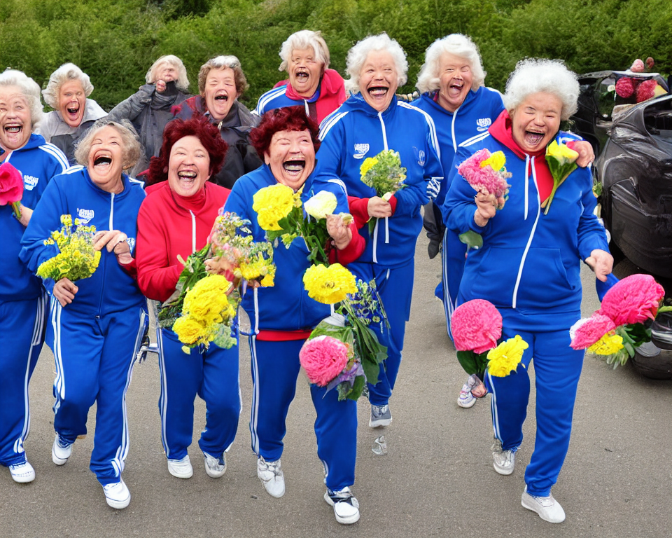 prompthunt a gang of old ladies frying pans and carrying flowers