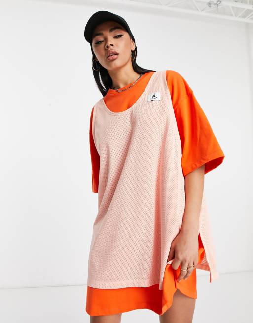 Jordan Essential layered oversized t shirt dress in rush and artic