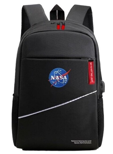 NASA Oxford Backpack With USB Connector 300D Material Embroidery Logo Zipper Label Red with Logo Side Pockets USB Charging Port