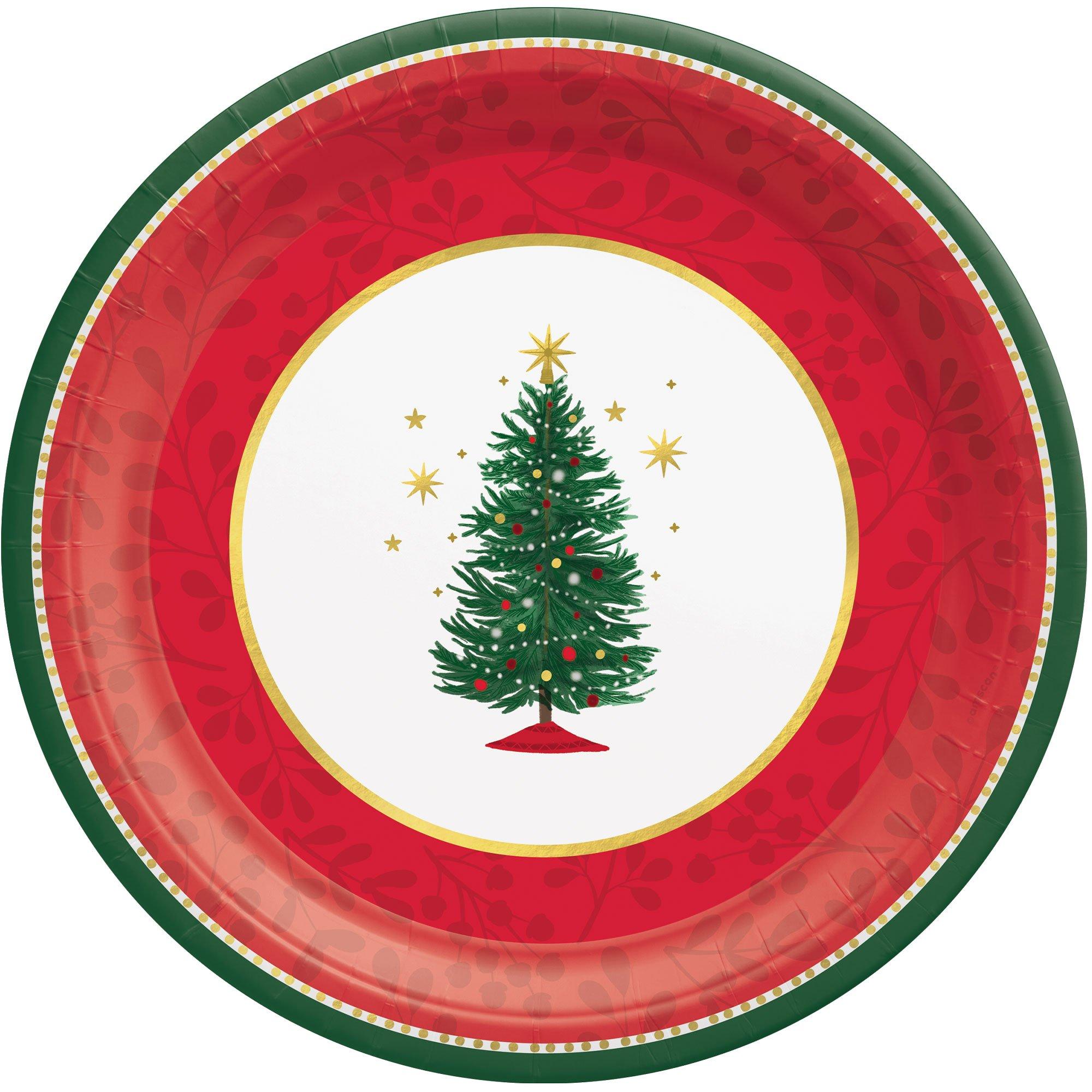 Joyful Christmas Tree Paper Dinner Plates 11.5in 8ct Party City