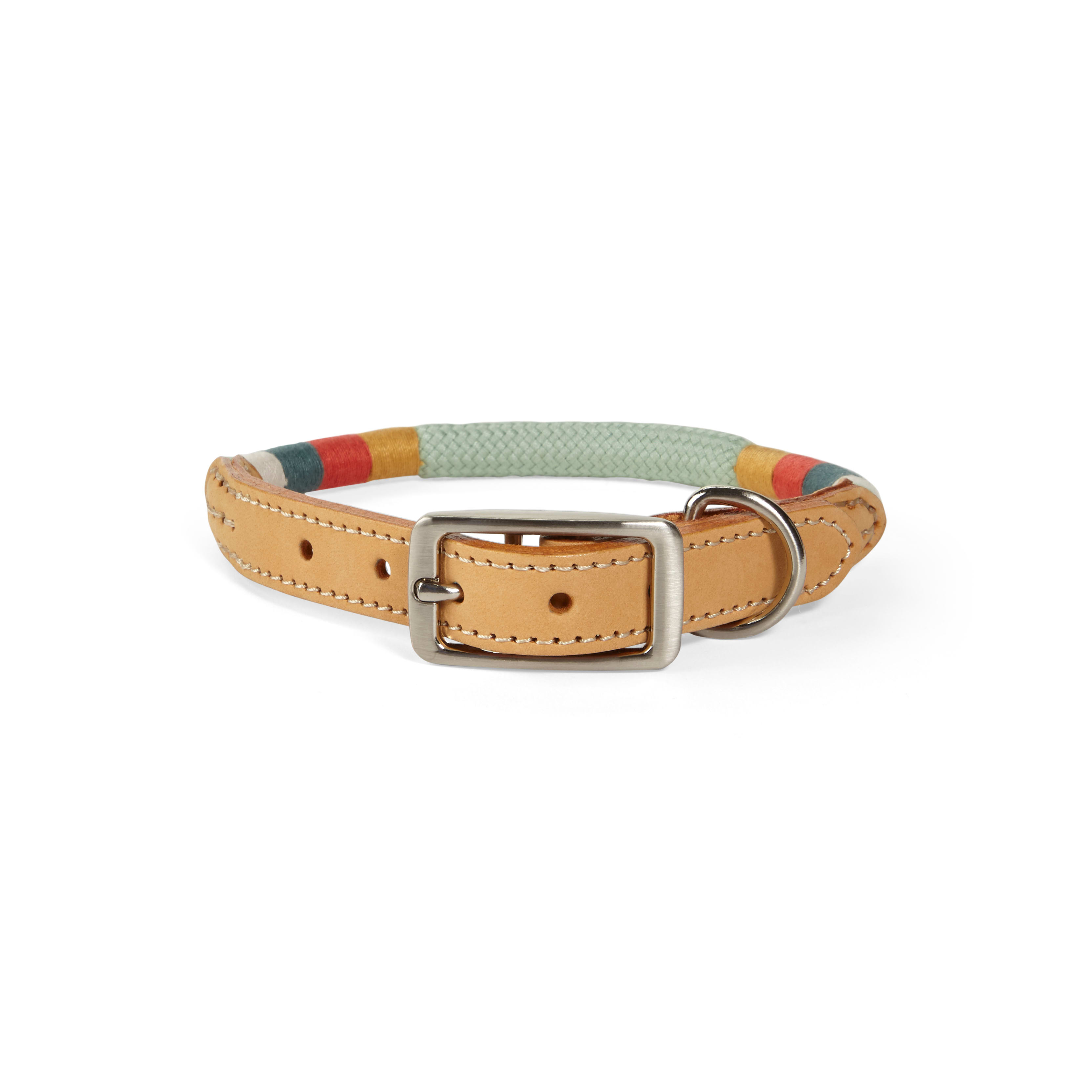 YOULY The Wanderer Green Rope Leather Dog Collar Small