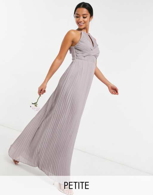 TFNC Petite bridesmaid pleated wrap detail maxi dress in gray