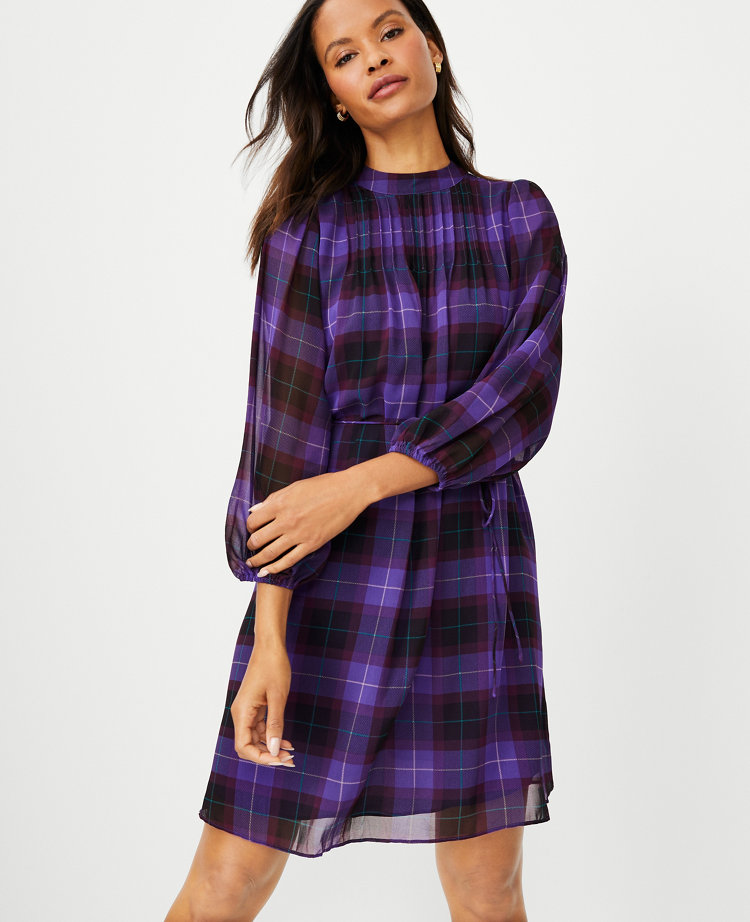 Ann Taylor Petite Plaid Pintucked Belted Dress ShopStyle