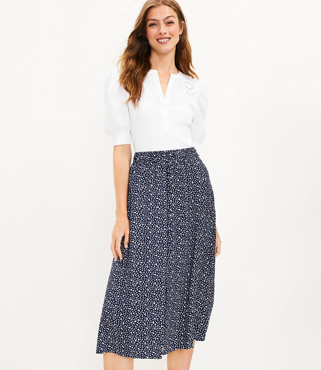 Petite Bloom Button Pull On Midi Skirt