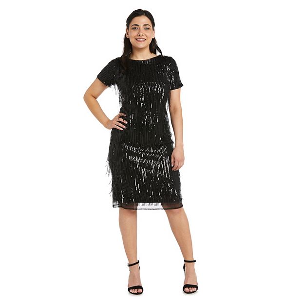 Petite R M Richards Embroidered Sequin Fringe Shimmy Dress
