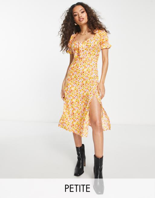 Influence Petite puff sleeve midi tea dress in orange floral print