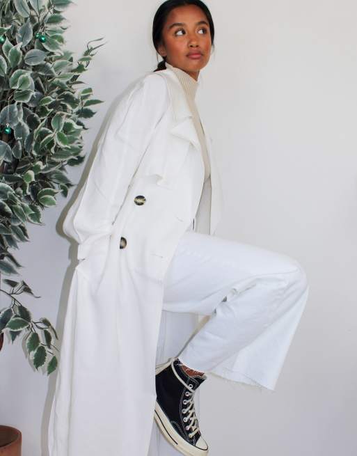 Petite white coat clearance, ASOS DESIGN Petite slouchy trench coat in white clearance