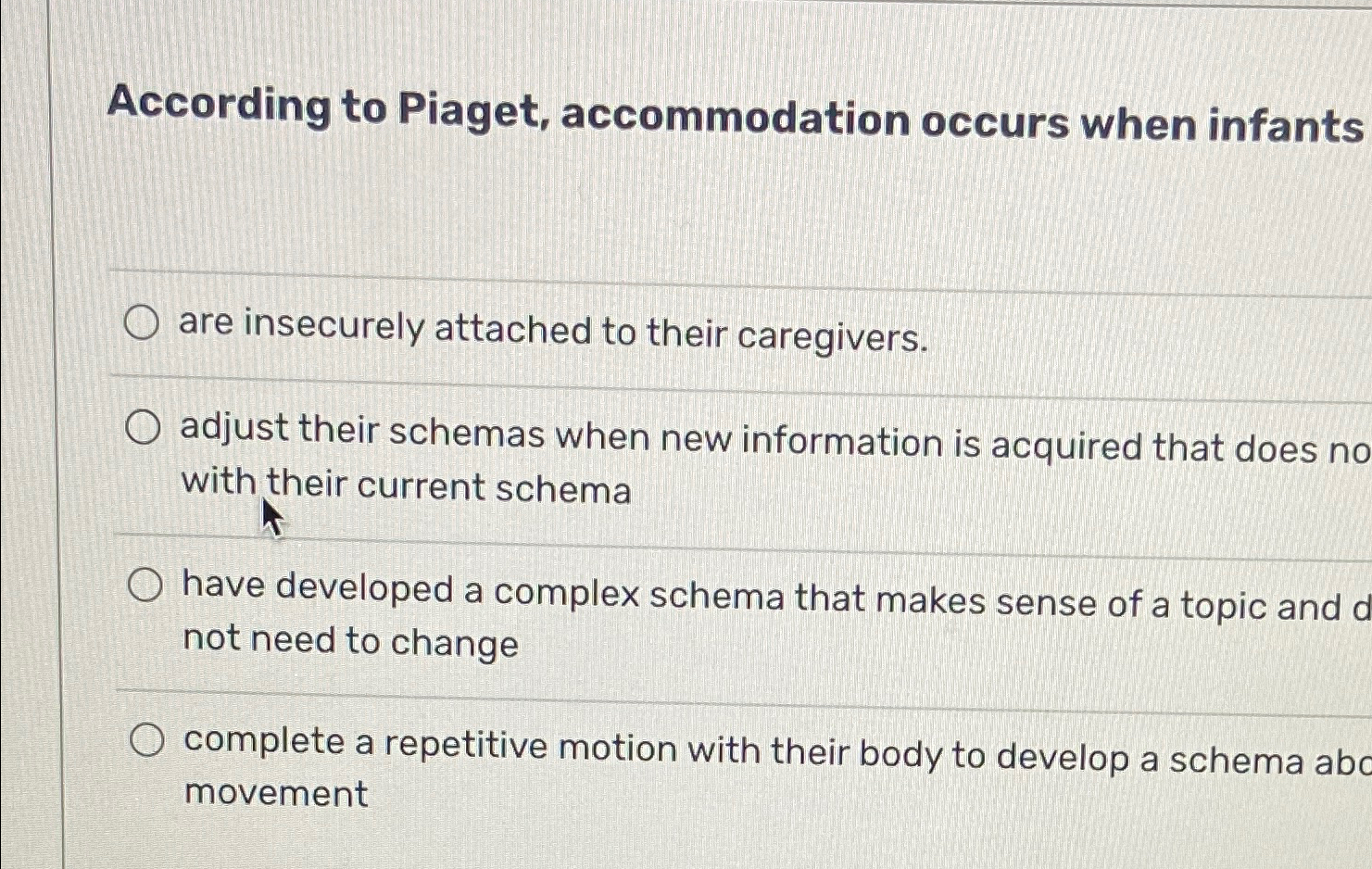 Solved According to Piaget accommodation occurs when Chegg