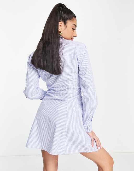 Pimkie Robe chemise boutonn e manches longues en popeline rayures Bleu et blanc