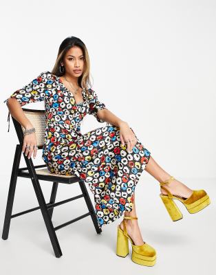 Pinafore midi dress topshop clearance, Topshop retro primary floral peplum midi dress in multi clearance