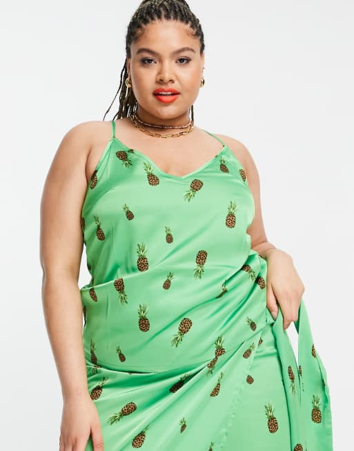 Pineapple plus size clothing clearance, Never Fully Dressed Plus satin cami top co ord in green leopard pineapple print clearance