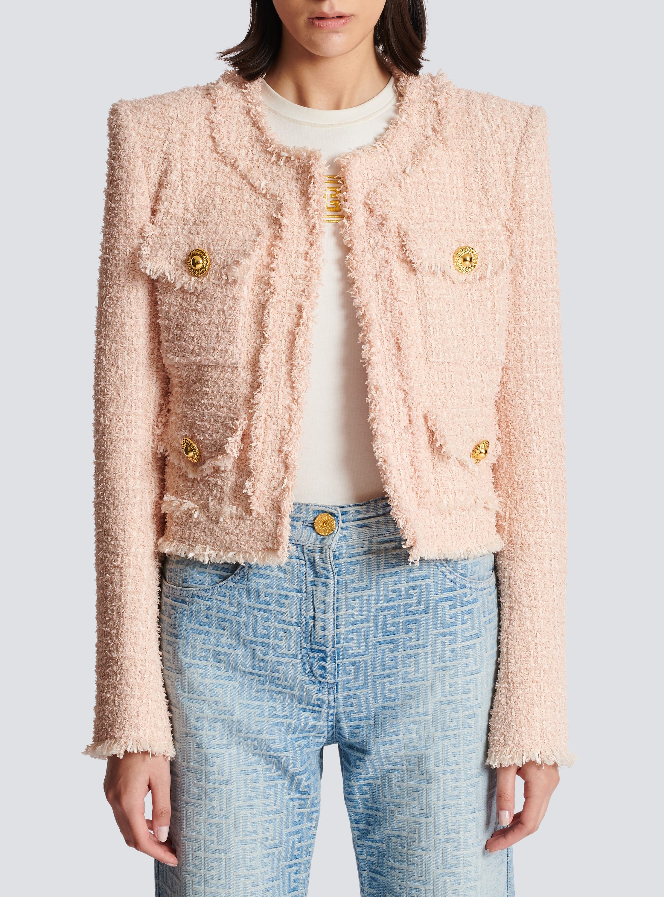 Balmain Signature tweed and chain jacket pink Women BALMAIN