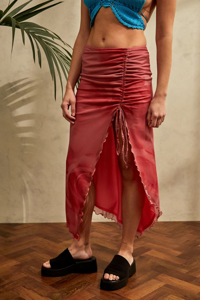 UO Rose Ruched Mesh Maxi Skirt Urban Outfitters UK
